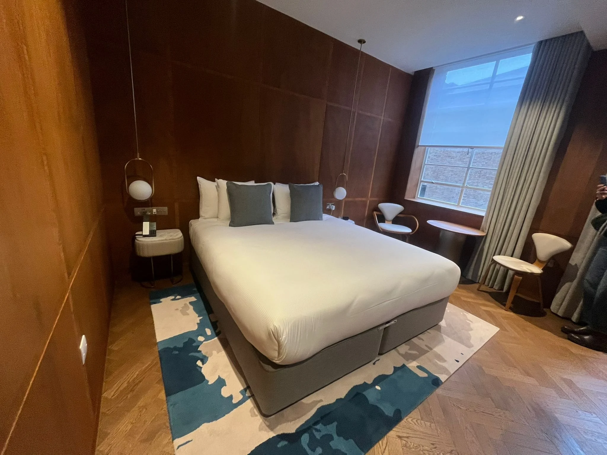 Extensive timber panelling restoration used sustainable materials and on-site veneering replication to match 1930s details damaged by water ingress. Concealed HVAC plant rooms were installed by lowering floors around foundations without disturbing original features, while secondary glazing reduced noise for neighbouring residents without compromising historic appearance.
